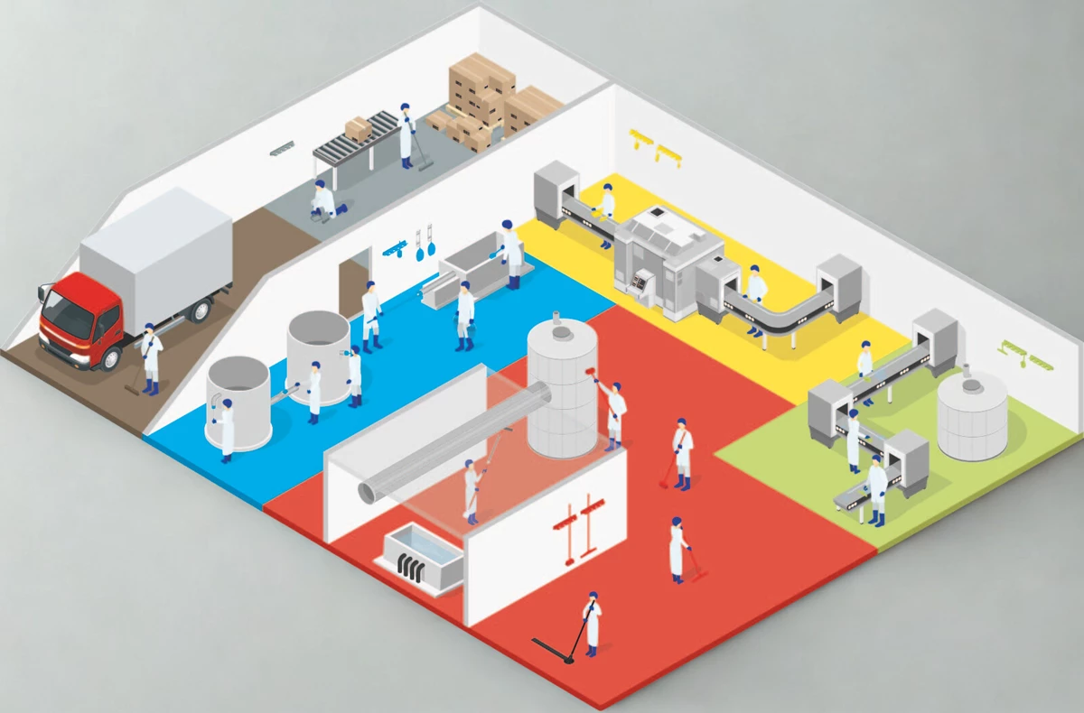 Olika färger till olika arbetsområden och ändamål förhindrar att smuts och bakterier sprids mellan olika ytor.